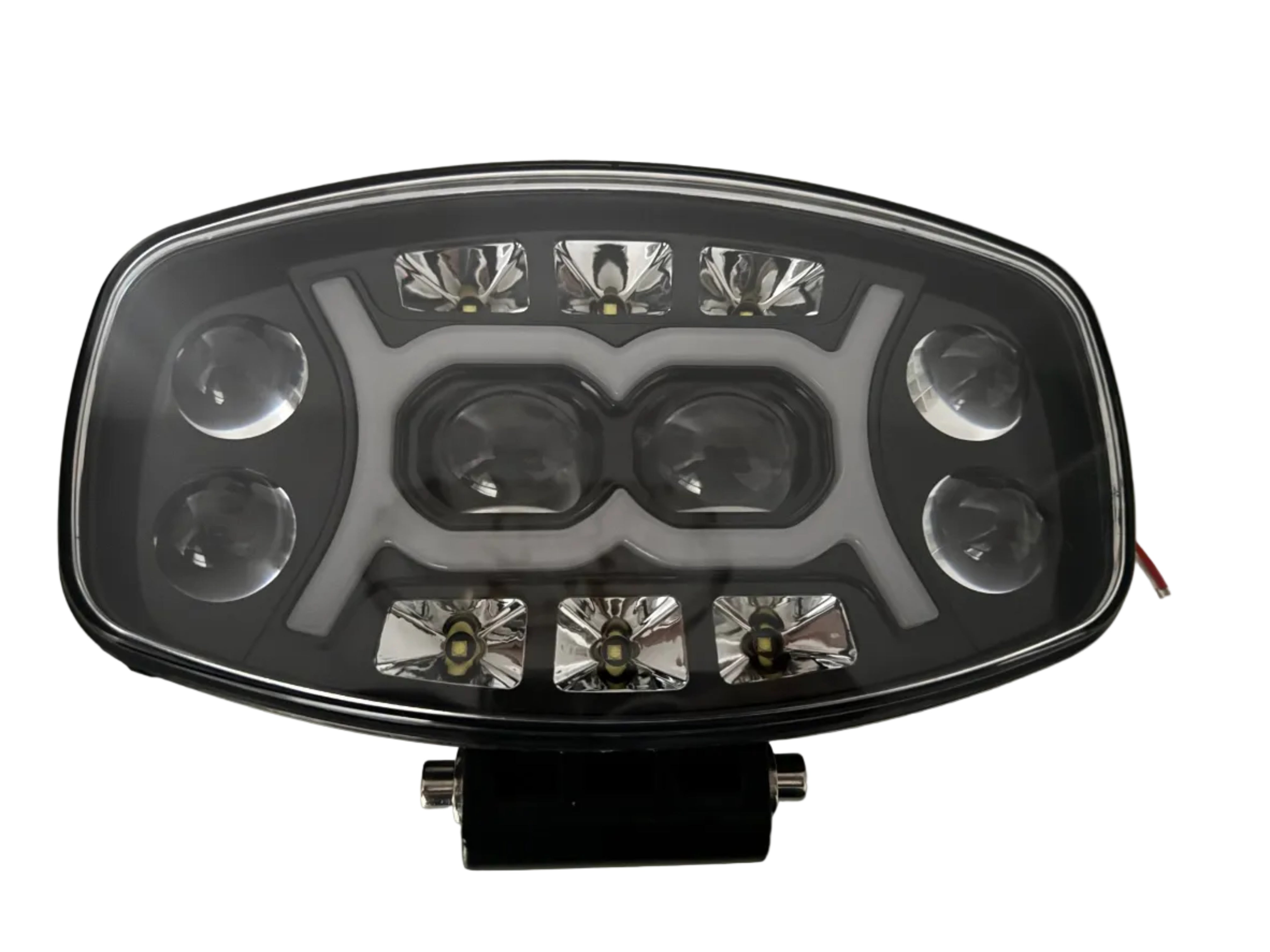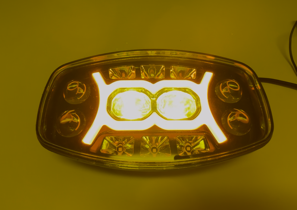 Proiector LED 150W cu 21.000 lumeni, design pătrat de 9”, echipat cu multiple lupe pentru iluminare precisă și eficientă. Lumina principală galbenă cu două lupe centrale este completată de lupe laterale cu lumină albă, rezultând un fascicul Combo Flood + Spot cu acoperire largă și proiecție pe distanță. Include lumină de poziție galbenă (DRL) pentru vizibilitate sporită și un aspect modern. Carcasa din aluminiu și protecția IP67 asigură funcționare fiabilă în condiții dificile.