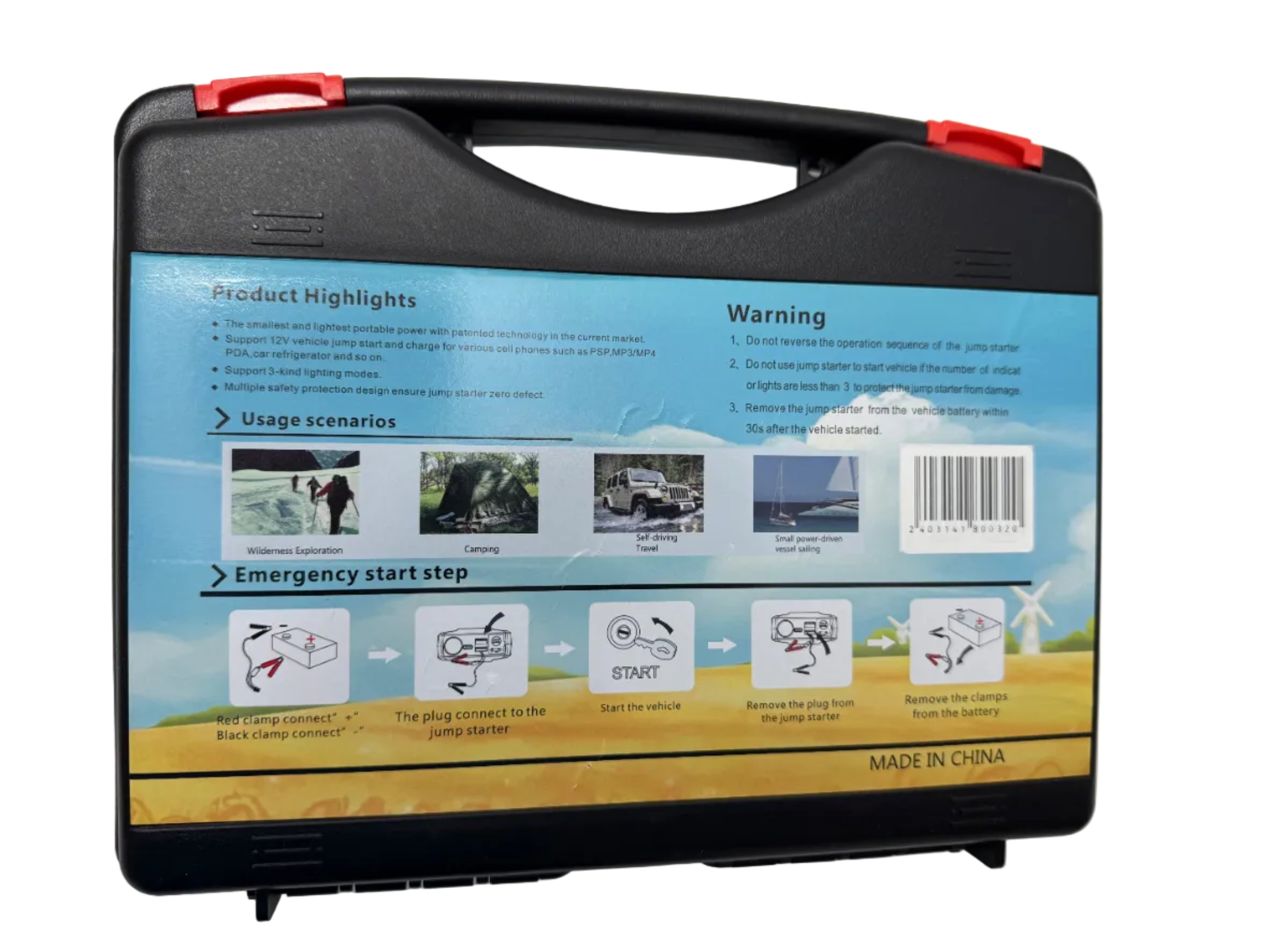 Starter auto portabil multifuncțional, conceput pentru pornirea rapidă a vehiculelor cu bateria descărcată. Dispozitivul integrează funcția de starter auto 12V, power bank USB cu încărcare rapidă QC 3.0 și lanternă LED integrată, fiind potrivit pentru utilizare zilnică și situații neprevăzute.